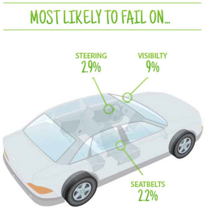 Know all the parts of your car that will be tested in the MOT and which ones most often fail with this handy infographic.